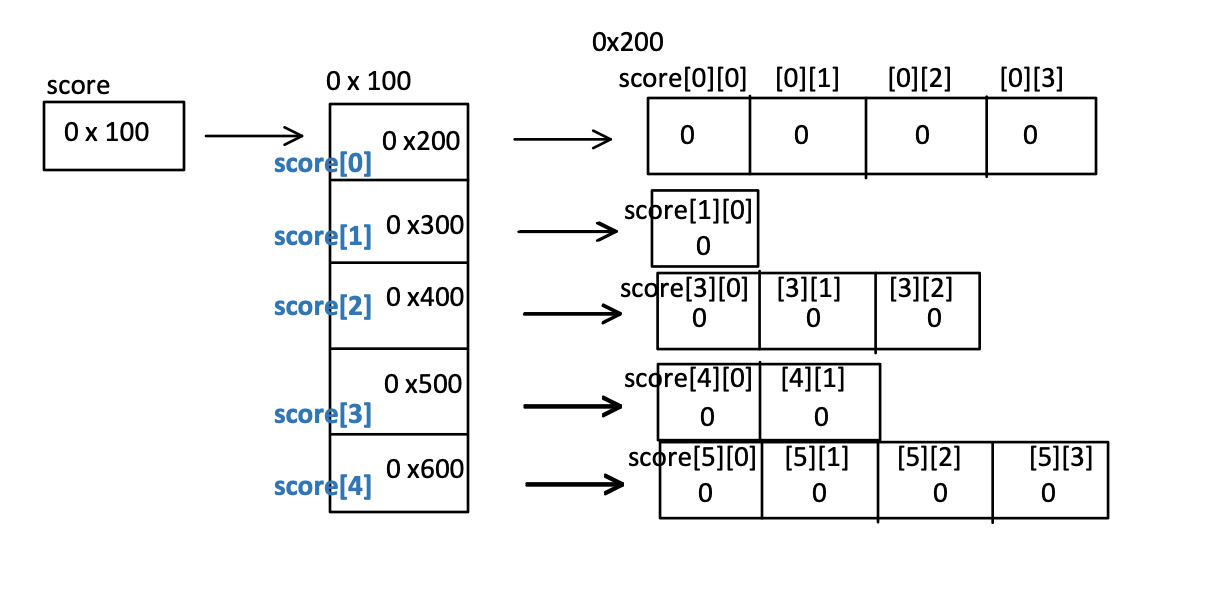 int [] [] score = new int[5] []; // 두번째 차원의 크기는 지정하지 않는다.